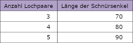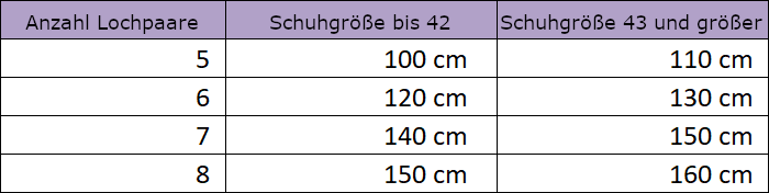 Für formelle Schuhe mit gewachsten Schnürsenkeln verwenden Sie die nachstehende Tabelle:
