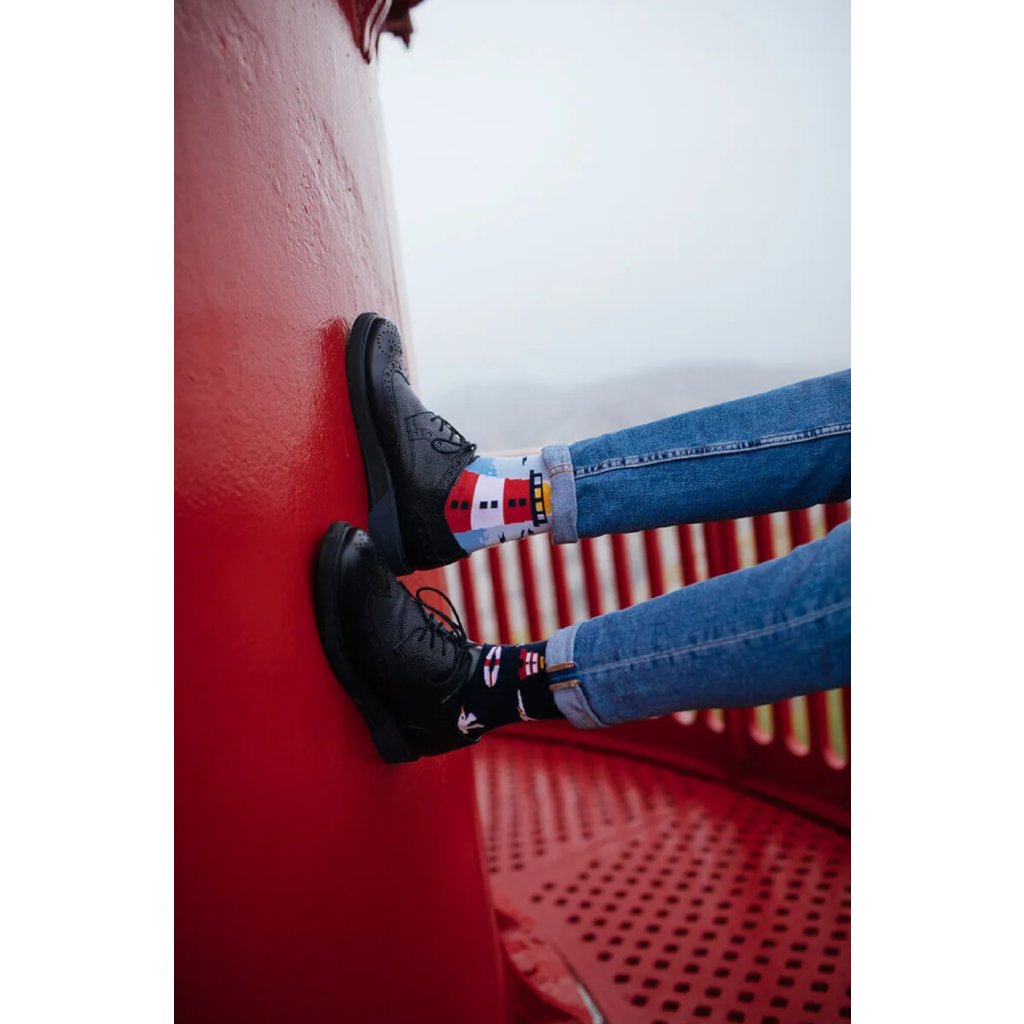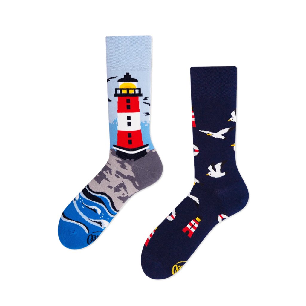 Lustige Leuchtturm-Socken mit nordischen Meeres- Küstenmotiven. Das Material besteht hauptsächlich aus Baumwolle, die sich angenehm anfühlt und Ihren Füßen ein frisches Gefühl verleiht.